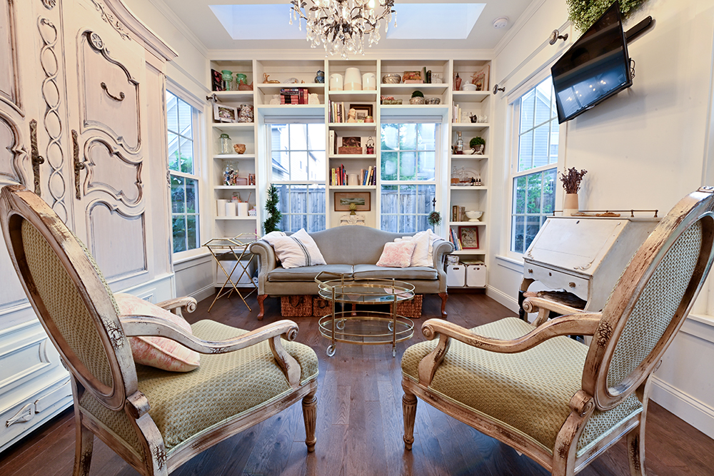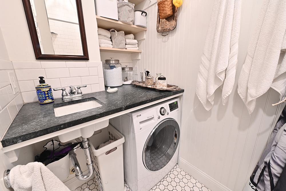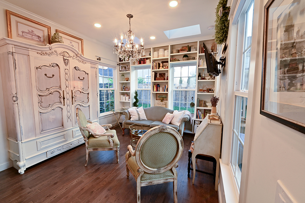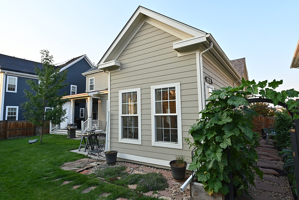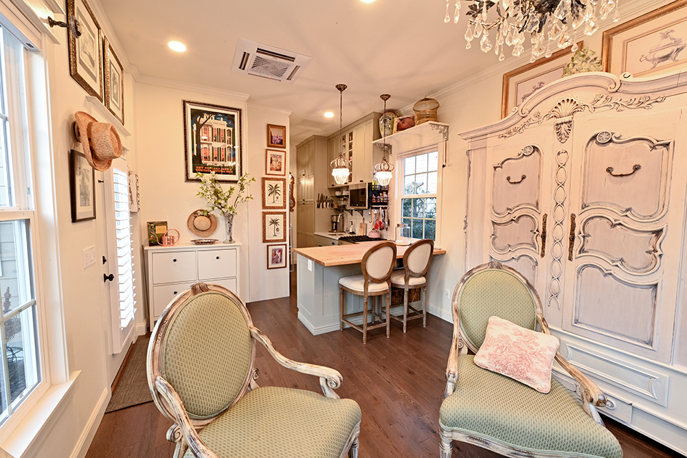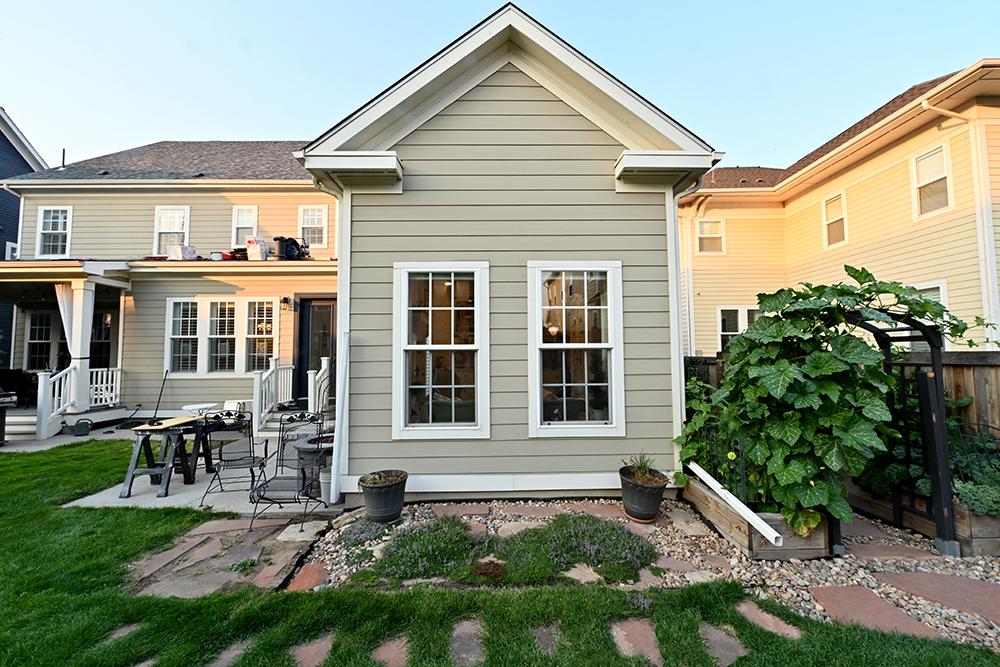 This is an attached garage conversion on a newly-built home. This modestly-sized 300 square foot studio will be the home for downsizing grandparents.